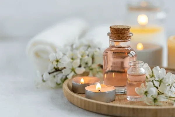 There are essential oils and flower/crystal essences with specific purposes of connecting us inward, Lapis Lazuli for spiritual depth and Lotus for purity. I apply oils like Lavender and Passionflower to assist in meditation and yoga practice. When praying, Holy Basil and Angelica help focus me and clear any negative energy. The act of massaging these oils can be the meditation itself, as well as a self-love ritual.